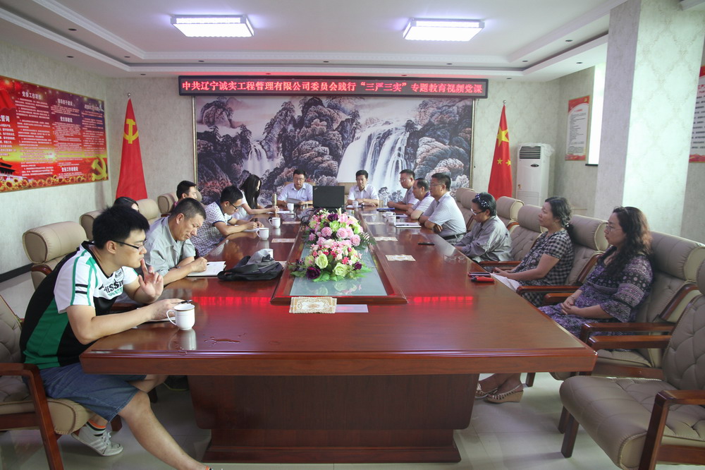 公司黨委于2015年8月21日下午14:00在公司一樓會議室召開了中共遼寧誠實工程管理有限公司委員會踐行“三嚴三實” 專題教育視頻黨課。公司領導班子、機關黨員及在撫黨員同志代表在主會場參加了黨課會,其他基層黨支部以視頻的方式參加了黨課。