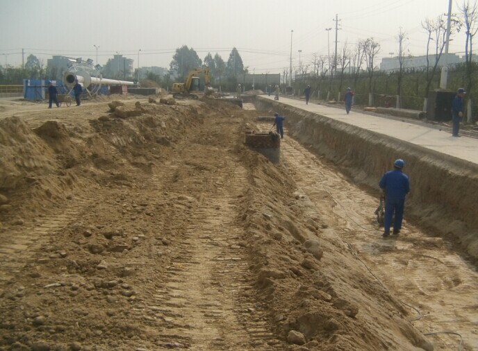 工人夯實(shí)施工中