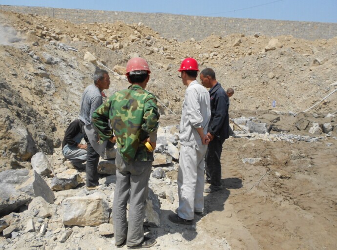 主罐區(qū)毛石基礎(chǔ)砌筑,姜總指導(dǎo)工作