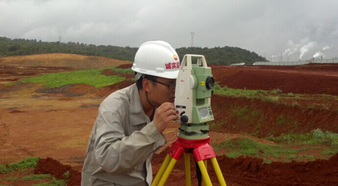 監(jiān)理人員對填方區(qū)高程進(jìn)行復(fù)測(遼寧誠實拍攝)